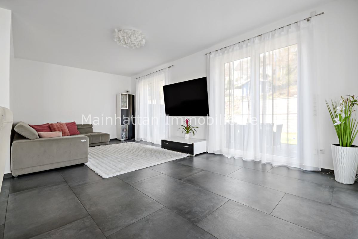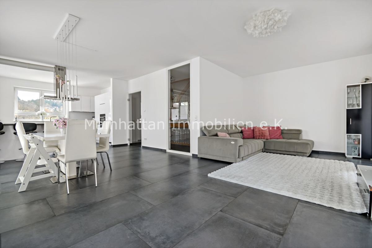 Der großzügige Wohn- und Essbereich mit offener Küche bildet das Herzstück des Hauses und bietet direkten Zugang zur Terrasse sowie zum Garten mit schönem Weitblick.
